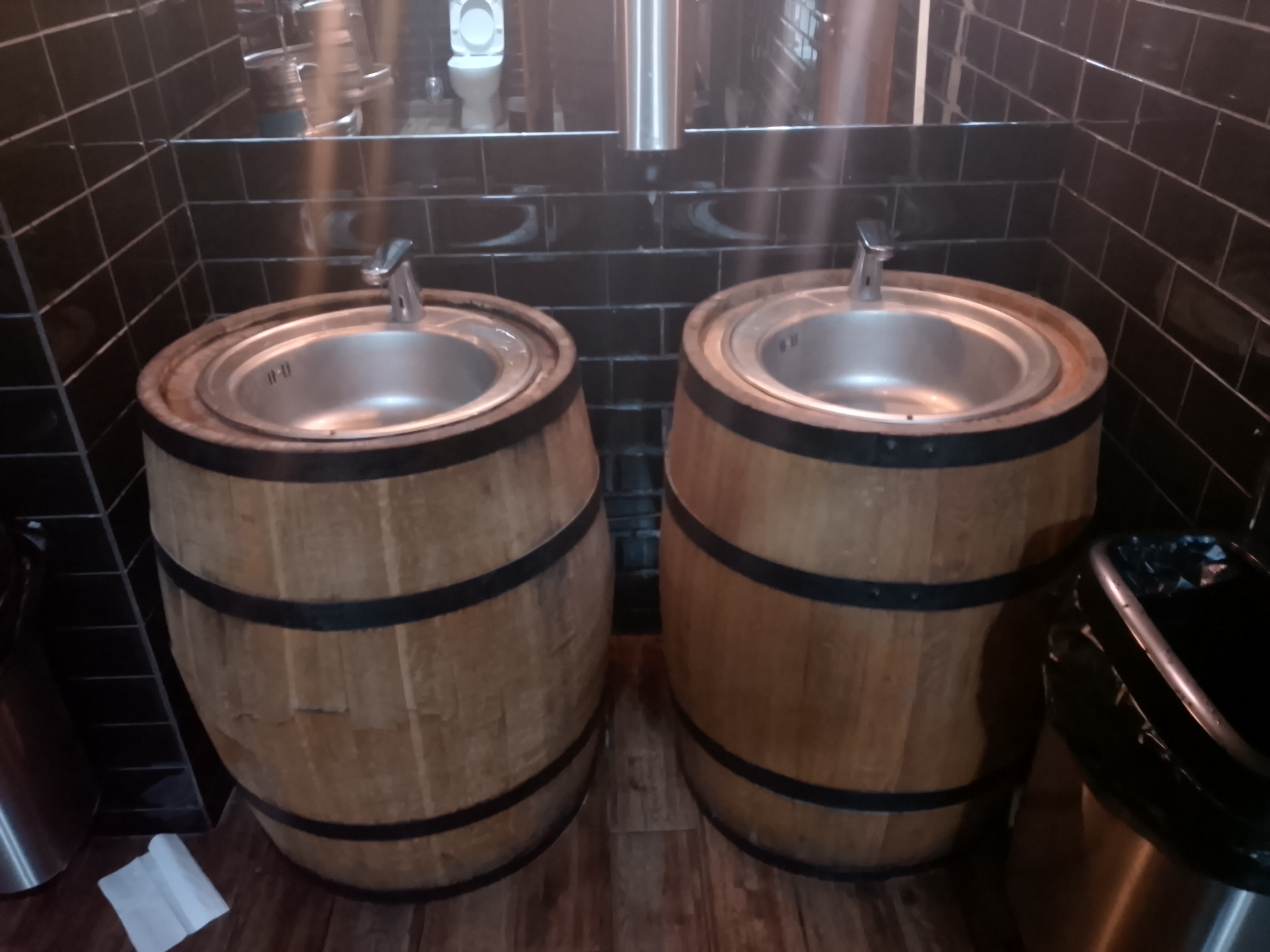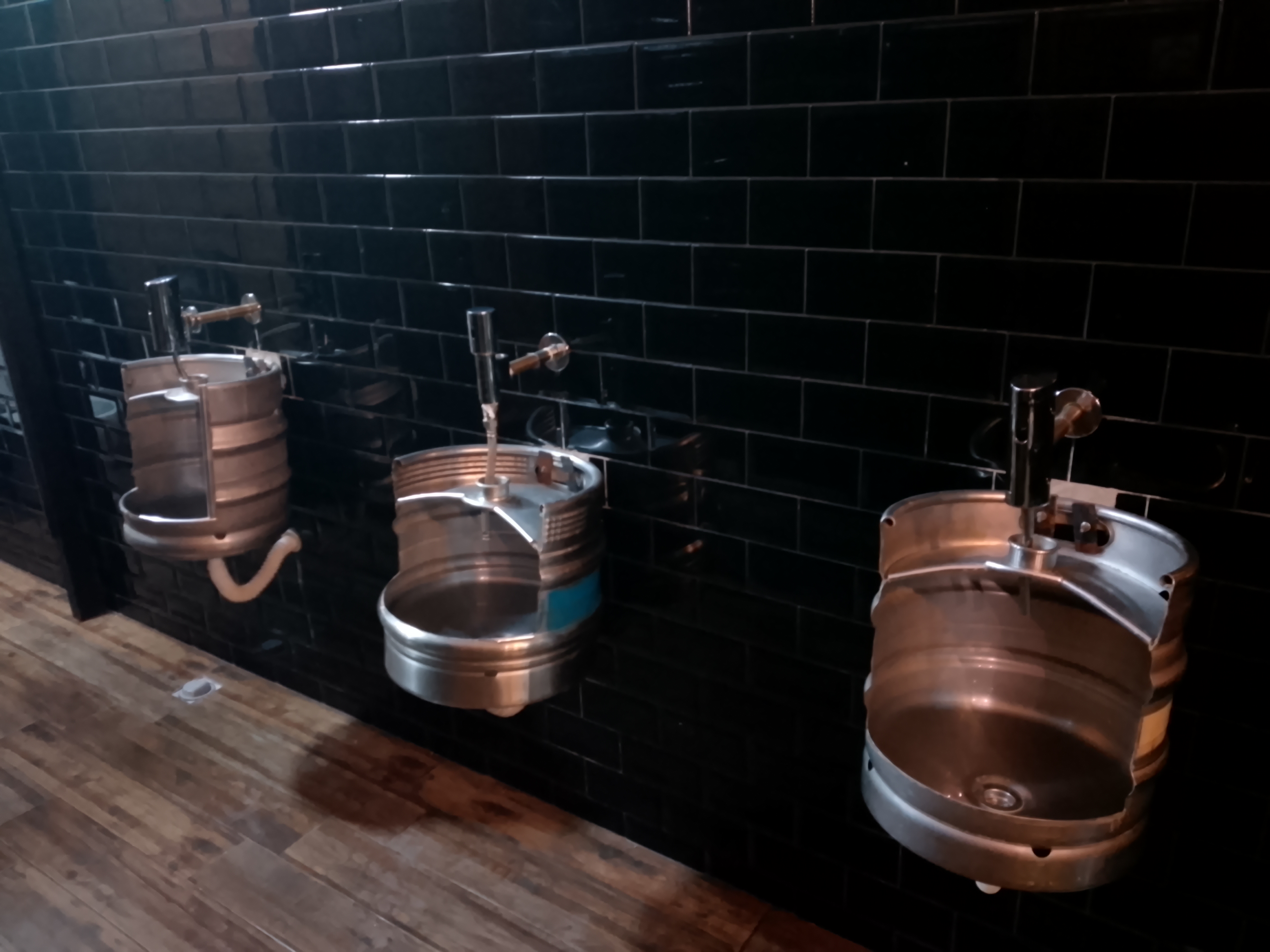 I was also in another restaurant which made good use of beer barrels and metal beer kegs in the gent’s toilet.